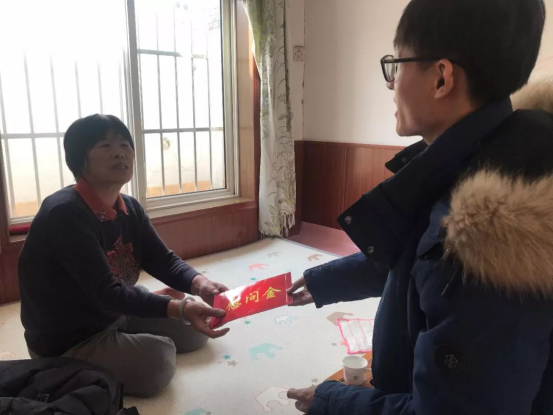 本次寒假家访慰问活动,美术学院党总支副书记苏培然陪同学校领导走访慰问了家住山东省滕州市东郭镇前坞沟村、美术学院绘画专业的一位学生;美术学院团总支辅导员先后走访了淄博市沂源县燕崖镇燕崖村(因学生父亲身患重病,特到沂源县人民医院肿瘤科病房探望)、济南市长清区孝里镇马岭村、临清市老赵庄镇前营村、青岛市崂山区刘家下庄等贫困学子家庭。
