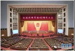 今天,我们在这里隆重集会,回顾改革开放40年的光辉历程,总结改革开放的伟大成就和宝贵经验,动员全党全国各族人民在新时代继续把改革开放推向前进,为实现“两个一百年”奋斗目标、实现中华民族伟大复兴的中国梦不懈奋斗。