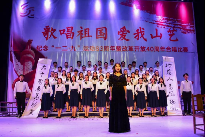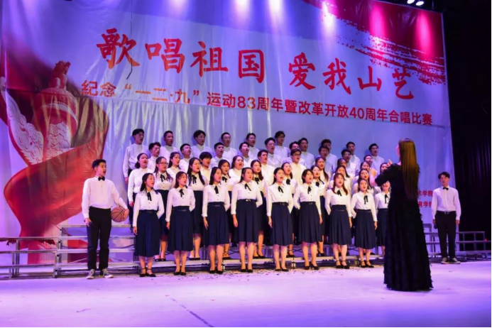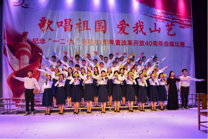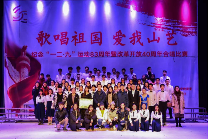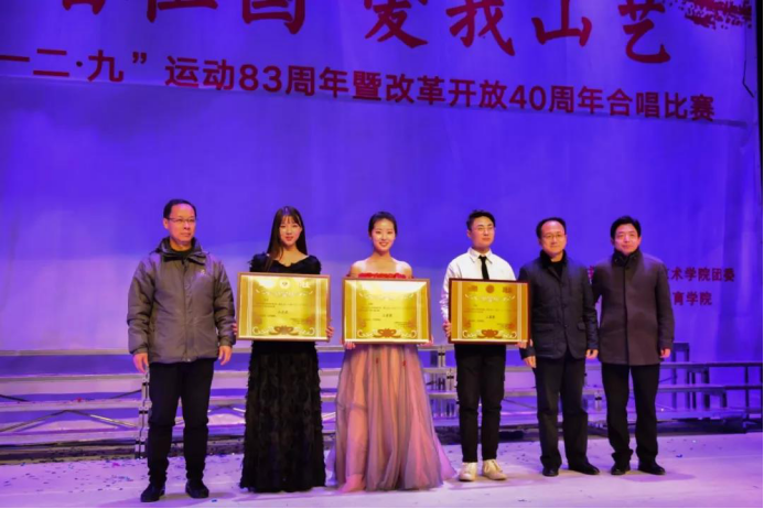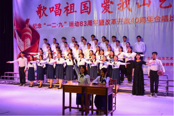 回顾伟大祖国的光辉历程,敞开心扉唱响红色经典,抒发新一代学生的爱国情怀,纵情放歌迎接美好未来。由山东艺术学院团委主办,职业学院团总支承办的2018年度“歌唱祖国、爱我山艺—纪念‘一二•九’运动83周年暨改革开放四十周年合唱比赛”于12月6日晚在戏剧学院圆形剧场圆满举行。来自学校九个学院的合唱团参加了本次比赛,美术学院演唱曲目《走进校园》和《在太行山上》以9.02的佳绩,荣获本次合唱比赛二等奖。