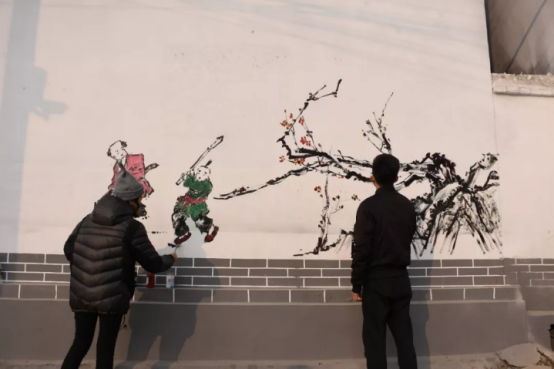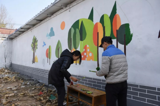 同学们不畏寒冷,不惧艰苦,披星出发,戴月返回,当一幅幅图画跃上墙面的时候,原本有些萧瑟和单调的乡村顿时增添了一丝春意,一点美丽,一些温暖。