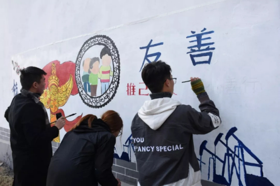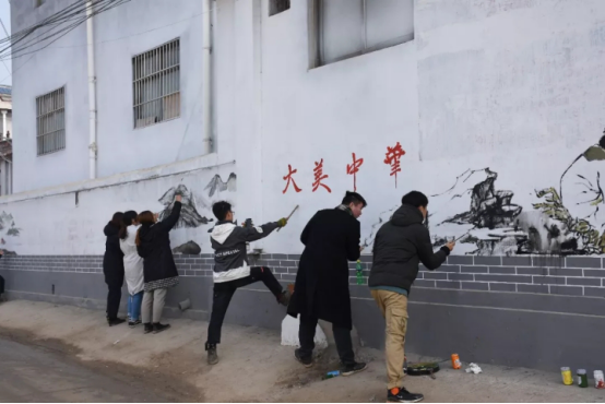 本次主题党日为期两天,成员由美术学院党员、党员发展对象、入党积极分子和共青团员组成,一行30人,为岔河头村贡献了一次文化之宴,留下了二十四面艺术之墙。其中,既有“不忘初心、牢记使命”、“共筑中国梦”、“社会主义核心价值观”等弘扬正能量的作品,也有梅、兰、竹、菊以及山水画等人文景观作品。