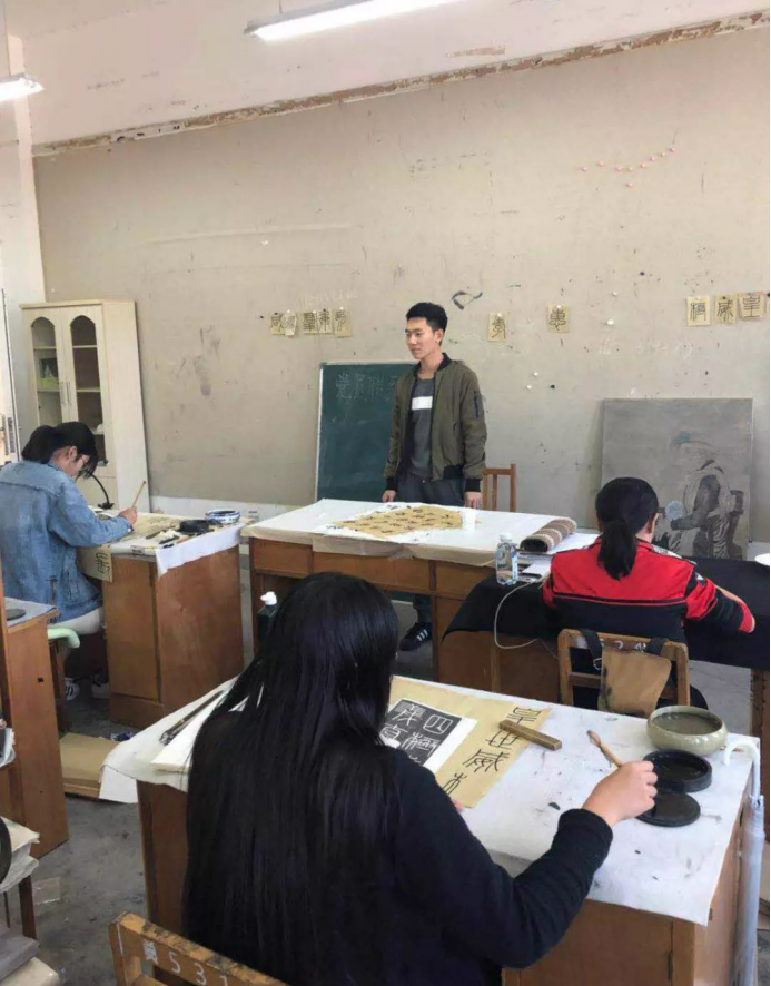 除了进行主题创作,美术学院本科生党支部学生党员还积极践行“红心向党、永做先锋”十个一工程,走进新生班级开展主题班会。10月16日下午,学生党员贾智铄同志走进2018级书法班开展“大学生责任”主题班会,对该班的学习风气、生活管理、心理状况等进行剖析与引导。他从自身学习经历谈起,与同学们分享了自身感悟,鼓励同学们主动学习,认真生活,积极参与校内外活动,坚持写日记,不断锤炼自身,努力成为一个有责任、有担当的大学生。