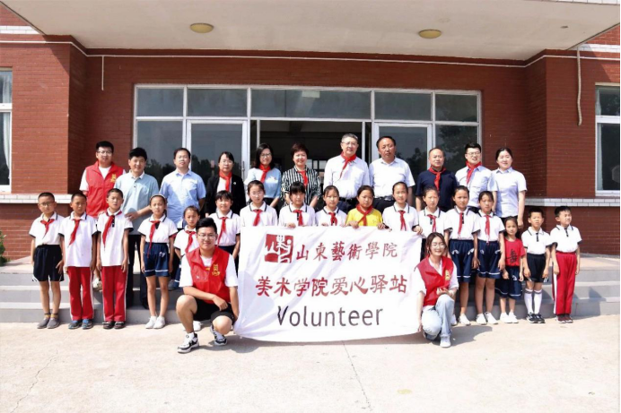 美术学院党总支副书记陈秀芹在致辞中指出,“豆豆书屋”是山艺爱心驿站牵手山东重工集团财务有限公司共建的,是“六一”儿童节送给孩子们最好的礼物。山东艺术学院成立于1958年,60多年来秉持“闳约深美”的校训精神,培养了像彭丽媛、倪萍、刘曦林等一大批享誉国内外的著名艺术家。美术学院是山艺建校之初就有的三大学科之一,60多年来始终坚持重基础、厚实践的治学理念,倡导学生学以致用、知行合一、服务社会。山艺爱心驿站正是在深厚的学术积淀和育人基础上成立的,五年多来,立足山艺、面向长清,开展了大量公益志愿服务活动,已经成为了山东艺术学院一张叫得响、传得开的公益名片。在支教活动中,山艺志愿者们教学相长,专业技能也得到了很大提高,在此,我仅代表美术学院向为我们学生成长提供平台和机会的龙湾小学表示感谢!今后山艺爱心驿站将在学校党委和美术学院的大力关怀和支持下,发挥艺术专业特长,致力公益、服务长清。不忘初心、继续奋进,为长清带来更多属于山艺的色彩!