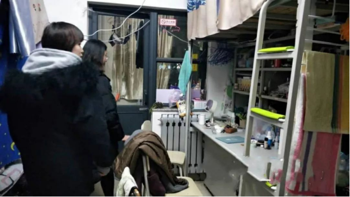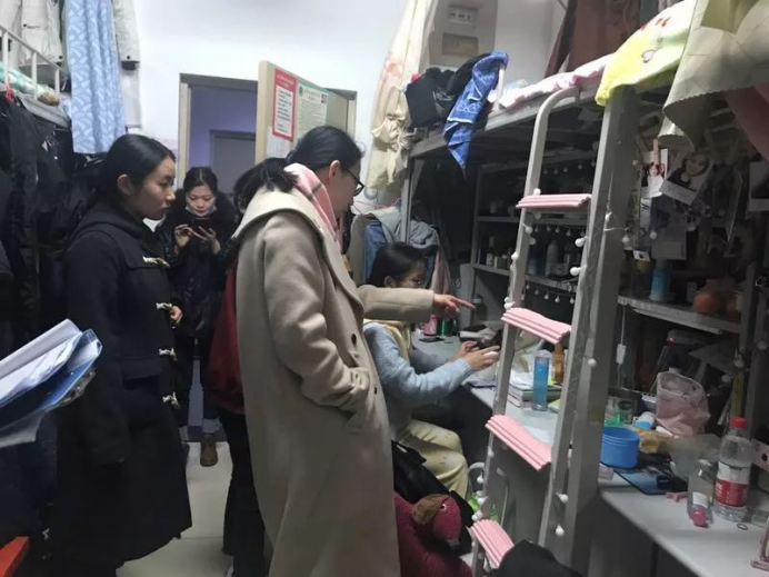 学生党员殷菲菲、丁一方检查2号女生公寓