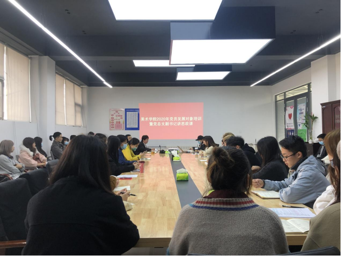 为深入学习中国共产党的历程,加深理解共产党的实质内涵,10月21日中午,美术学院党总支组织2020年学生党员发展对象培训暨党总支副书记陈秀芹讲授思政课,全体辅导员、学生预备党员、2020年党员发展对象,入党积极分子参加。培训采取线上线下的形式同时进行,活动由团总支书记崔运强主持。