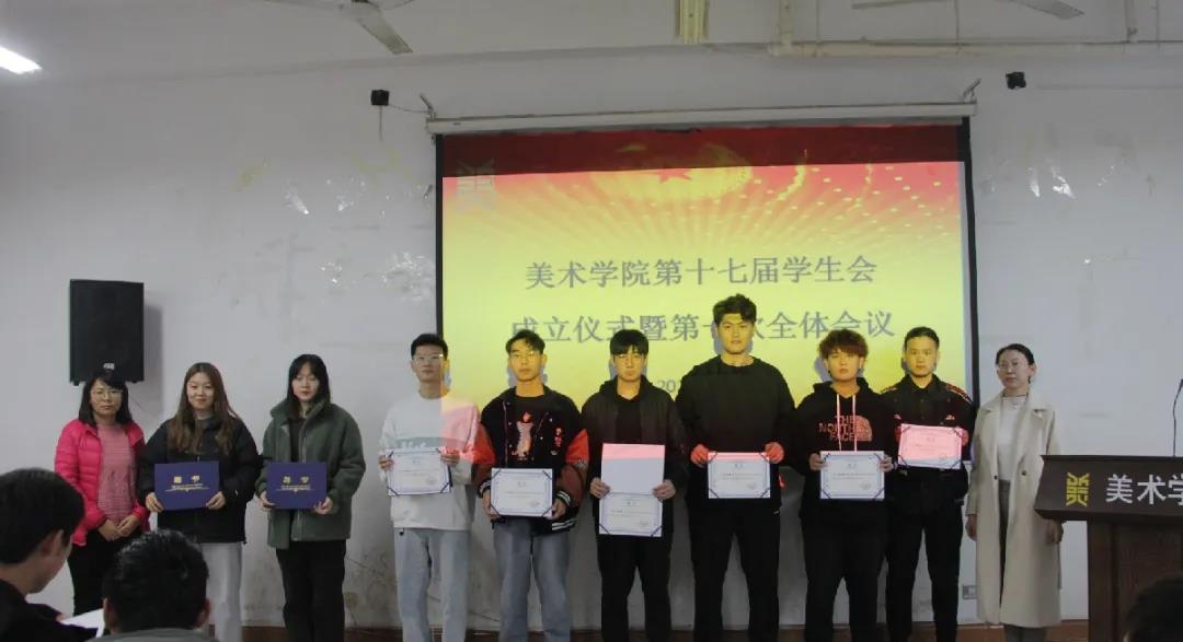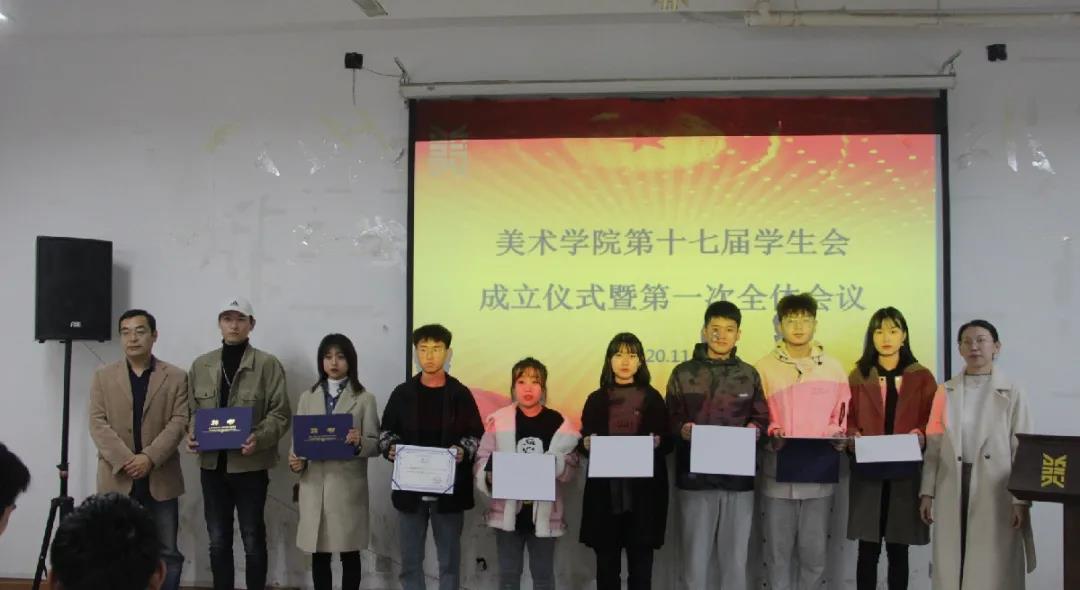 11月18日美术学院第十七届学生会成立仪式暨第一次全体会议在美术学院C204多媒体会议室成功召开。美术学院党总支副书记陈秀芹、团总支老师以及第十七届学生会全体成员和第十六届学生会优秀学生干部参加了本次会议。