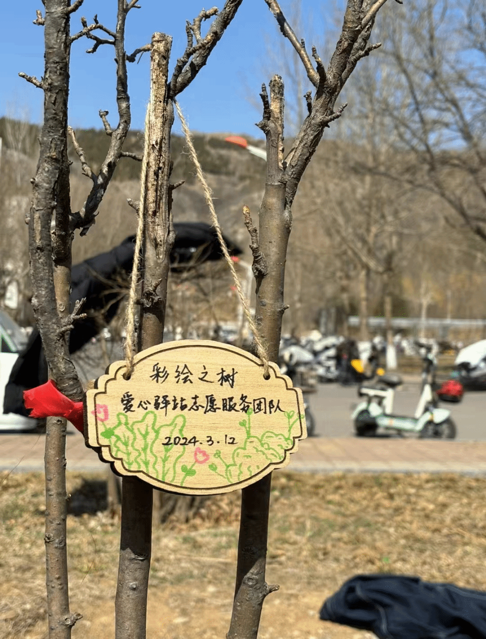 在团总支书记田静的带领下,同学们领取植树工具后分工协作,相互配合,挥锹挖坑,添土种苗,挂上亲手制作的护树牌,并命名为“彩绘之树”。本次植树节活动很好的践行了劳动教育,引导同学们树立积极健康的劳动观,培养热爱劳动的品质,提升劳动技能,在劳动中体验着生活的乐趣。