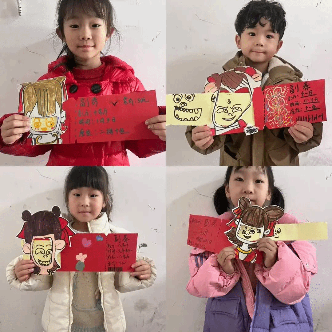 “老师,我的哪吒会喷彩虹色的火焰!”在《哪吒2》主题课上,孩子们设计的电影票充满天马行空的想象。这场“‘丹青’领航”的第一课,用艺术为孩子们打开了想象的大门。志愿者们巧妙地将传统神话与现代审美结合,在方寸票面上展开一场艺术启蒙。这些独一无二的作品,正在悄悄改变着孩子们观察世界的方式。