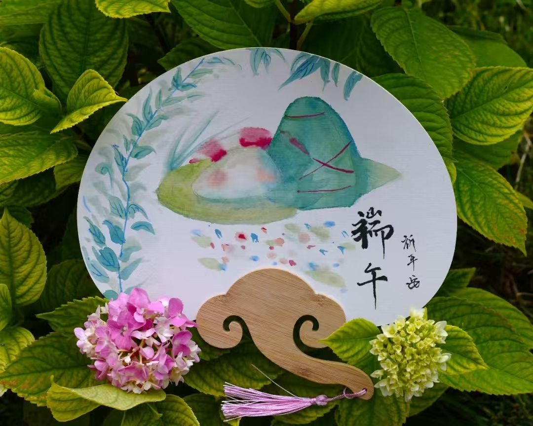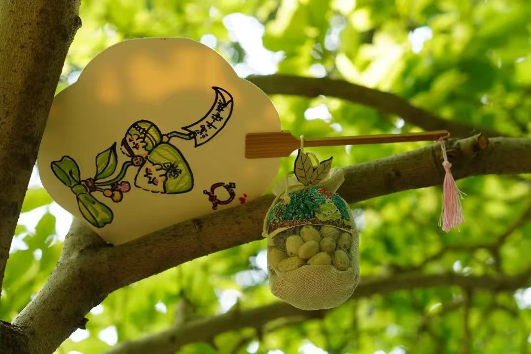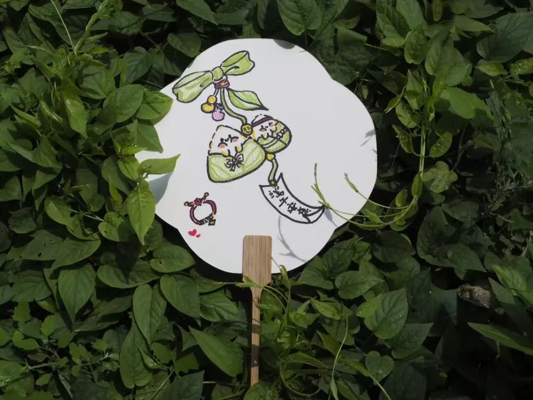 同学们发挥美术专业优势,围绕“廉洁”,手工制作香囊、绘制团扇。活动现场穿针、引线、缝布料、装入艾草、挂吊穗…大家在包好的香囊上绘上了“廉”和端午节元素。同学们奇思妙想,用毛笔、马克笔在团扇上画出了粽子、龙舟等图案,写上了“端午安康”等字样,表达对大家的美好祝愿,营造了浓厚的节日氛围。