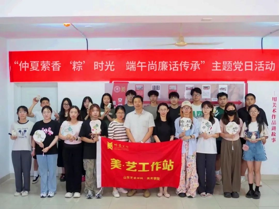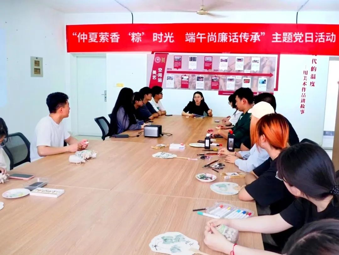 6月6日,美术学院在“美·艺工作站”开展“仲夏萦香‘粽’时光 端午尚廉话传承”主题党日活动,师生党员代表、“青习社”成员参加活动。