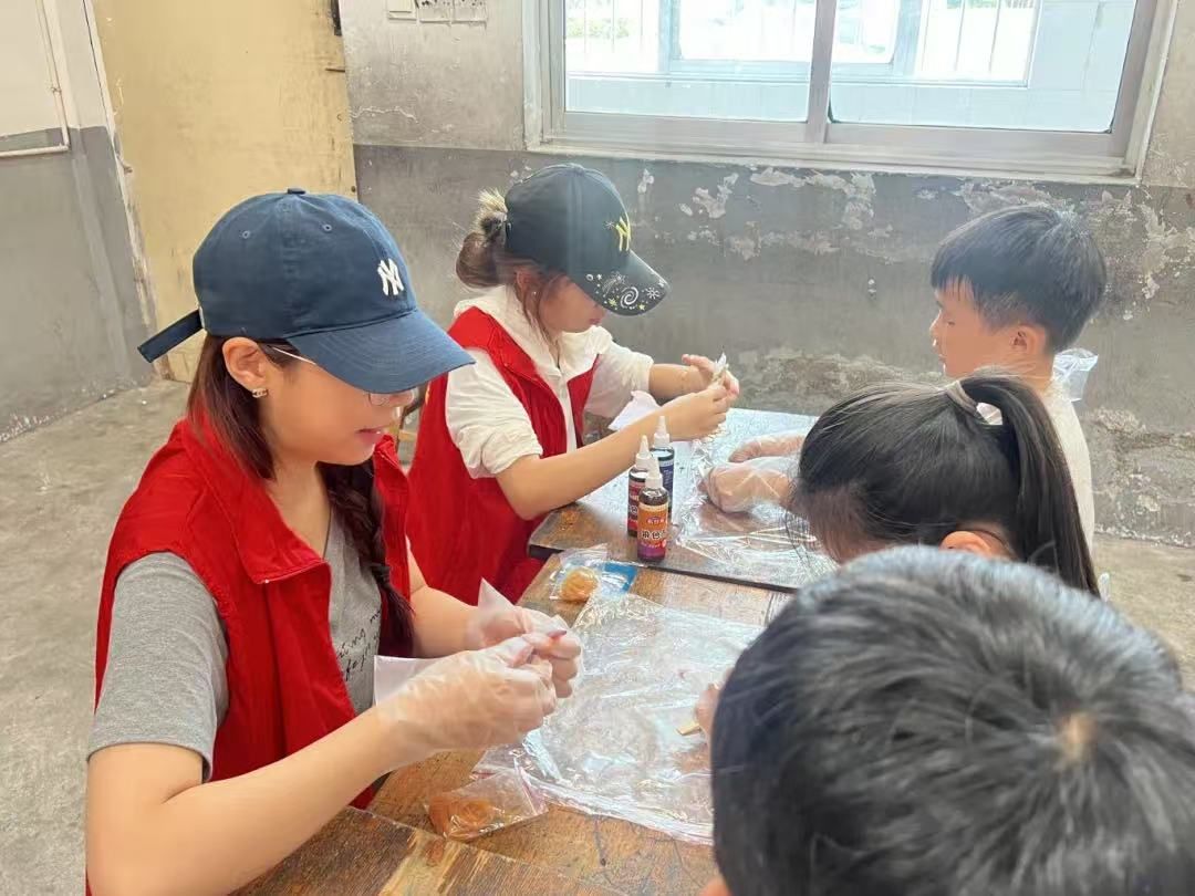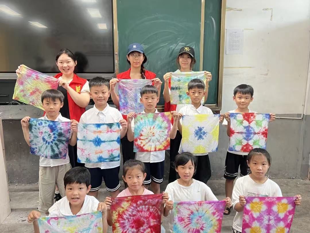 为进一步强化非物质文化遗产的保护与传承工作,志愿者在拳铺镇开展了一场别开生面的传统文化体验活动,讲述了漆扇的发展历史、配色方法和制作流程,以漆为笔,以水为墨,以扇为纸,带领孩子们制作出了专属于自己的工艺品,切身体验了非遗技艺。扎染体验活动中,志愿者使孩子们在一“扎”一“染”中体会到中国传统非遗文化的魅力,在寓教于乐中增强了对优秀传统文化的认知和理解。志愿者表示青年大学生作为传承非遗技艺的重要力量,要以更饱满的热情和更扎实的行动,让非遗文化在新时代焕发出新的活力和魅力。