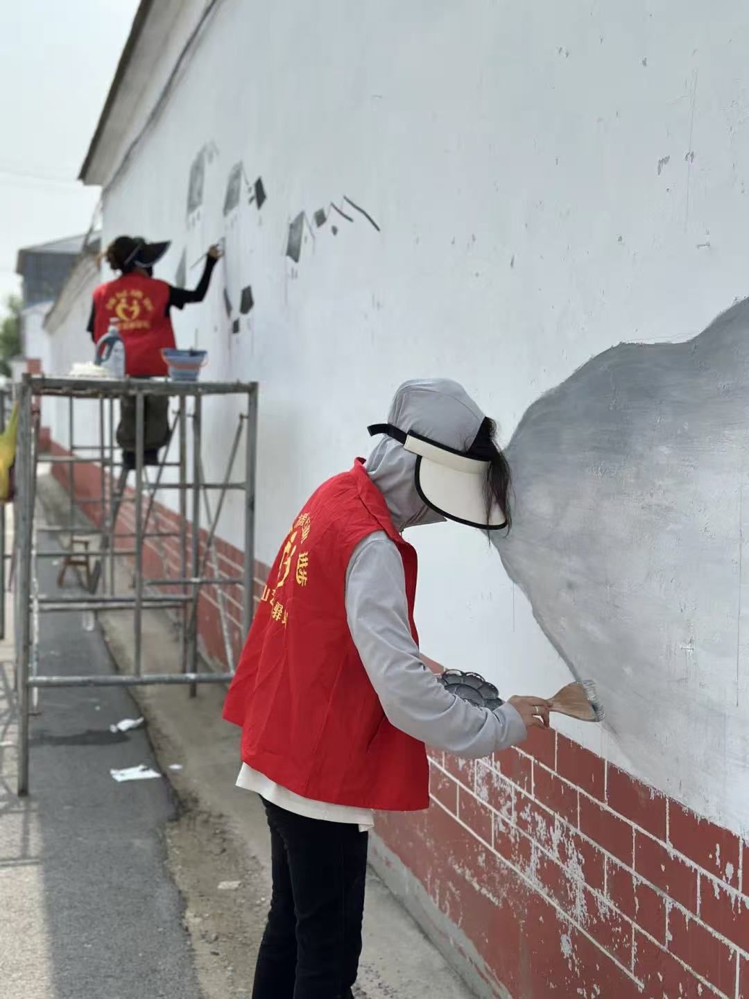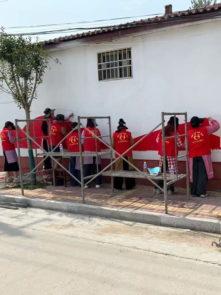 实践团充分发挥美术专业优势,以乡村振兴、红色文化、生态环保等为主题,在拳铺镇各村庄开展文化墙绘。志愿者精心构思,巧妙设计,手中的画笔让单调的墙面变得五彩斑斓,一幅幅生动美丽的画卷徐徐展开,共绘制10面墙,300多平方,积极向上的价值观宣传到乡村各个角落,为乡村带来了新的活力。此次墙绘活动,不仅是“专业+实践”的有效结合,更是一场“行走的艺术大课堂”。