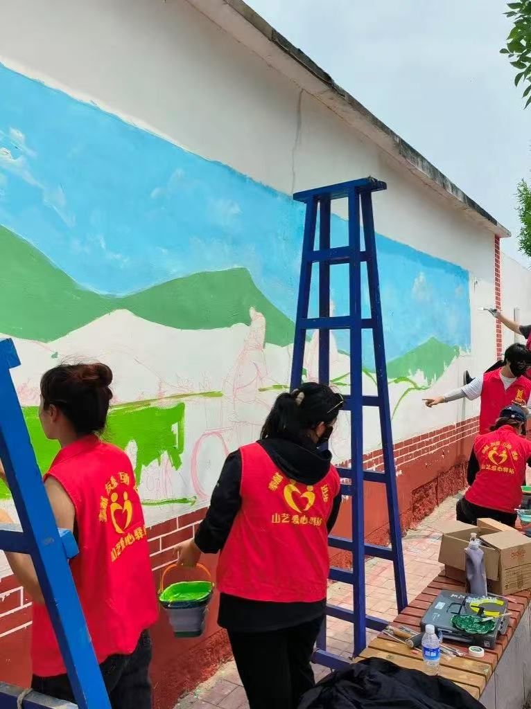 为学习宣传贯彻习近平总书记关于青年工作的重要思想,进一步动员引领青年学生在投身基层建设中坚定信念、增长本领、作出贡献,7月11日-7月14日,山东艺术学院美术学院“丹青”暑期社会实践团一行32人前往济宁市梁山县开展暑期“三下乡”社会实践,美术学院本科生党支部党员、“青习社”成员、“山艺爱心驿站”成员参加活动。实践团开展了“六个一”系列活动,即开展一次文化墙绘,体验一次传统文化,接受一次红色文化教育,开设一次美术小课堂,进行一次企业调研,撰写一篇实践心得。