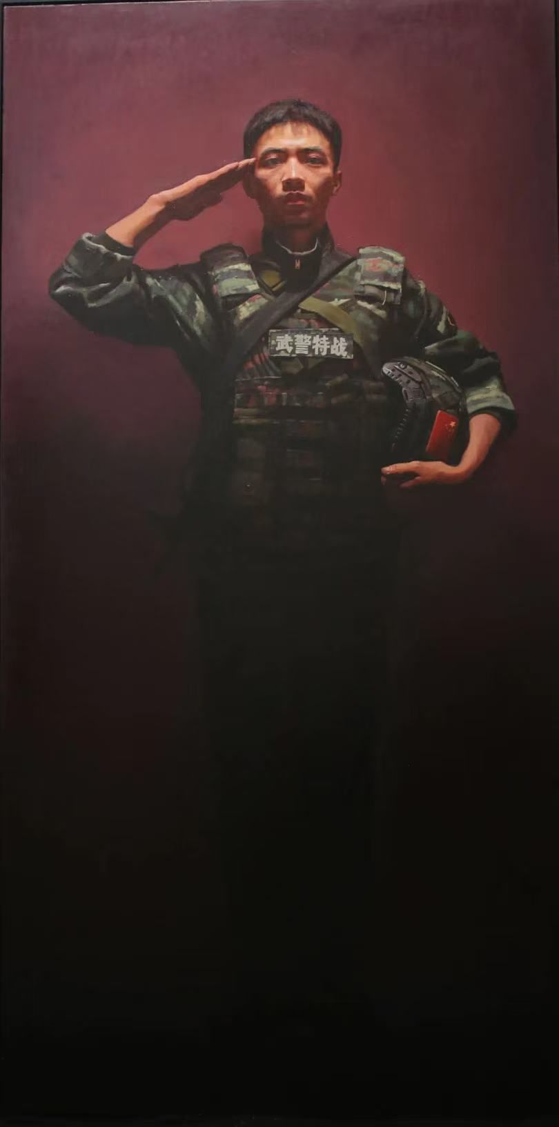 研究生党支部周鹏宇说,《信仰的颜色》这幅油画,体现的是武警战士那标准的敬礼动作不仅仅是一种视觉上的呈现,它直观地映射出了一种无私奉献、服务人民的精神。这一动作背后,蕴含着更深层次的象征意义——一种对国家和民族的忠诚信仰。如果信仰可以被赋予一种颜色,那么这种颜色,无疑就是那熠熠生辉、激情四溢的中国红。它不仅代表着我们的文化底蕴和民族精神,更是在每一个敬礼中,映射出无数中华儿女对国家的热爱与承诺。