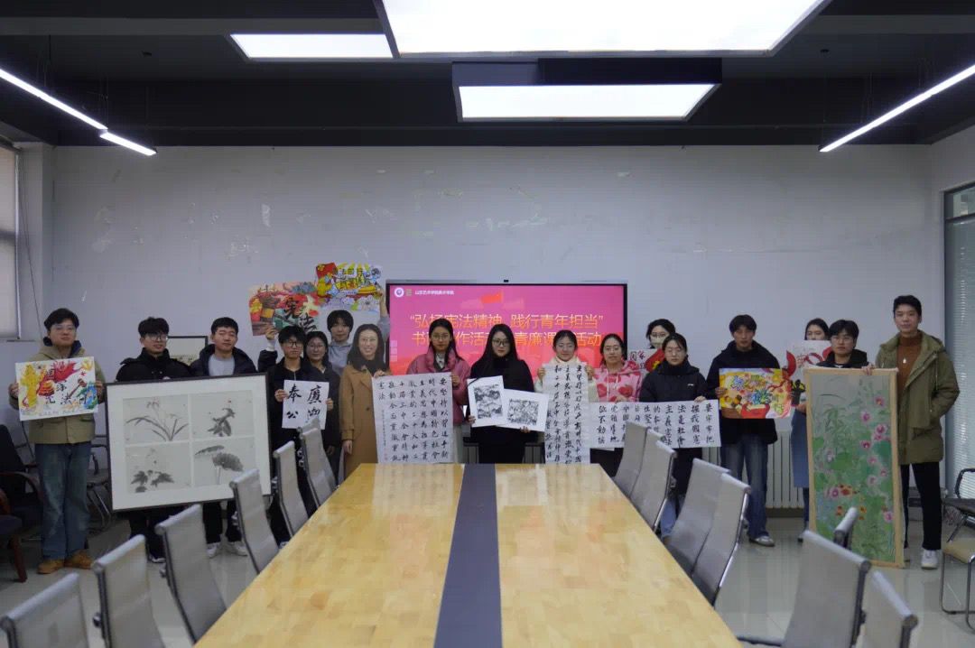 2024年12月4日是我国第11个国家宪法日,为普及宪法知识,弘扬宪法精神,维护宪法权威,提高大学生法律意识,培育廉洁品质,12 月 6日,山东艺术学院美术学院在美·艺工作站举办“弘扬宪法精神 践行青年担当”国家宪法日书画创作活动暨青廉课堂活动。美术学院本科生党支部党员、习近平新时代中国特色社会主义思想青年学习社(简称“青习社”)成员参加活动。