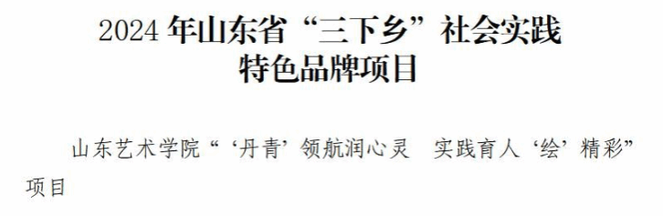 近日,共青团山东近日,共青团山东省委公布了2024年暑期“三下乡”社会实践获奖名单,山东艺术学院美术学院获含优秀学生、优秀指导教师、特色品牌项目在内的多项表彰。省委公布了2024年暑期“三下乡”社会实践获奖名单,山东艺术学院美术学院获含优秀学生、优秀指导教师、特色品牌项目在内的多项表彰。