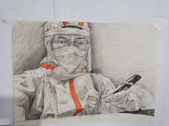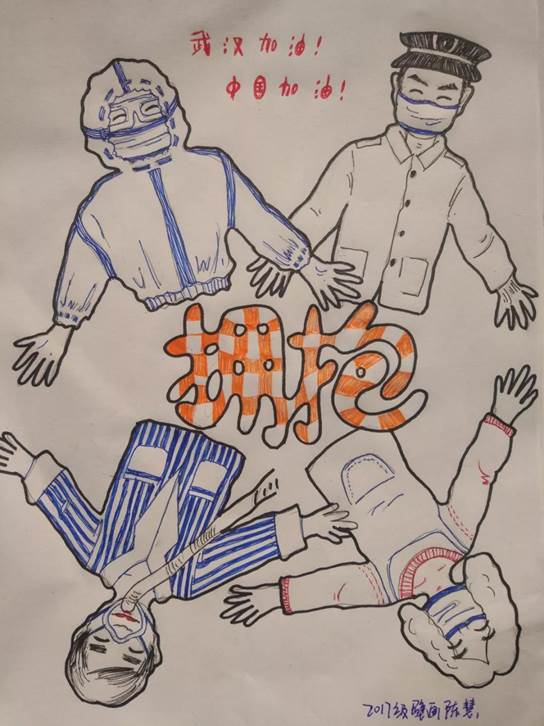 继美术学院党员率先行动之后,更多美院学子更加积极、主动地参与到新冠肺炎疫情的防控中来,立足爱国情怀、发挥专业优势,用心、用情歌颂战斗在抗疫一线的各行各业的“英雄”;用力、用笔表达着时代新人对于国泰民安的无限向往。今天,我们都是战士,我们都拿起自己的“武器”投入到这场民族与病毒的阻击战中去!