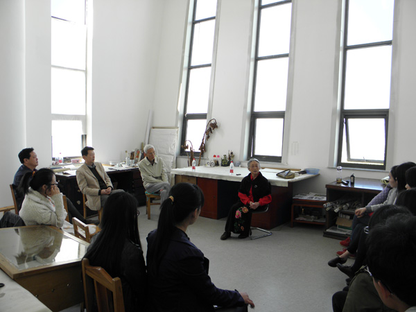 10月14日,柳咏絮女士与美术学院国画系师生一起座谈,美术学院副院长韩菊生,系主任马麟春出席座谈。座谈期间,柳咏絮女士谈论了柳子谷先生生平事迹,以及艺术感悟,同时对于美术学院长久以来的深厚感情。