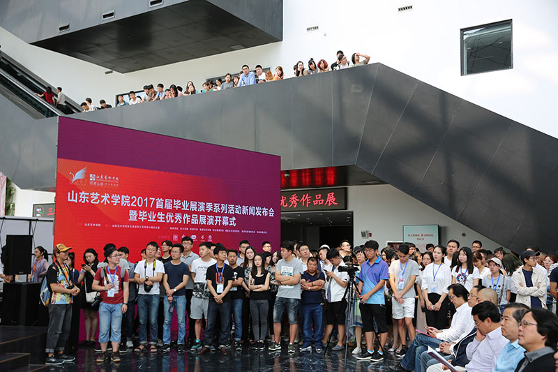 6月7日上午,山东艺术学院2017首届毕业展演季“闳美山艺”系列活动新闻发布会暨优秀作品展览开幕式在济南市美术馆举行,山东省文联副主席姬德君,山东艺术学院院长王力克、党委副书记孔祥华、副院长高启光、纪委书记兰绍彤出席,高启光副院长担任主持。