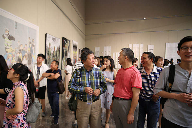 山东省美术家协会常务副主席、秘书长张宜,山东师范大学美术学院院长岳海涛,山东大学艺术学院副院长李平,济南大学美术学院院长刘雷,山东女子学院艺术学院院长张利、副院长申林,山东省政协委员、山东师范大学美术学院教授刘青砚,山东省美协当代艺术委员会副主任、山东省当代艺术创作院院长孙惠福,济南市美术馆馆长、济南画院院长吴建军,济南市美术馆、济南画院书记刘玉亮,济南市美术馆副馆长、济南画院副院长徐琳、高向红、张辉,美国那萨勒大学教授詹姆斯•奎恩,山东艺术学院老教授李振才,省政协常委、山东艺术学院教授梁文博,社会业内专家、美术爱好者及山艺师生近一千人参加新闻发布会和开幕式。