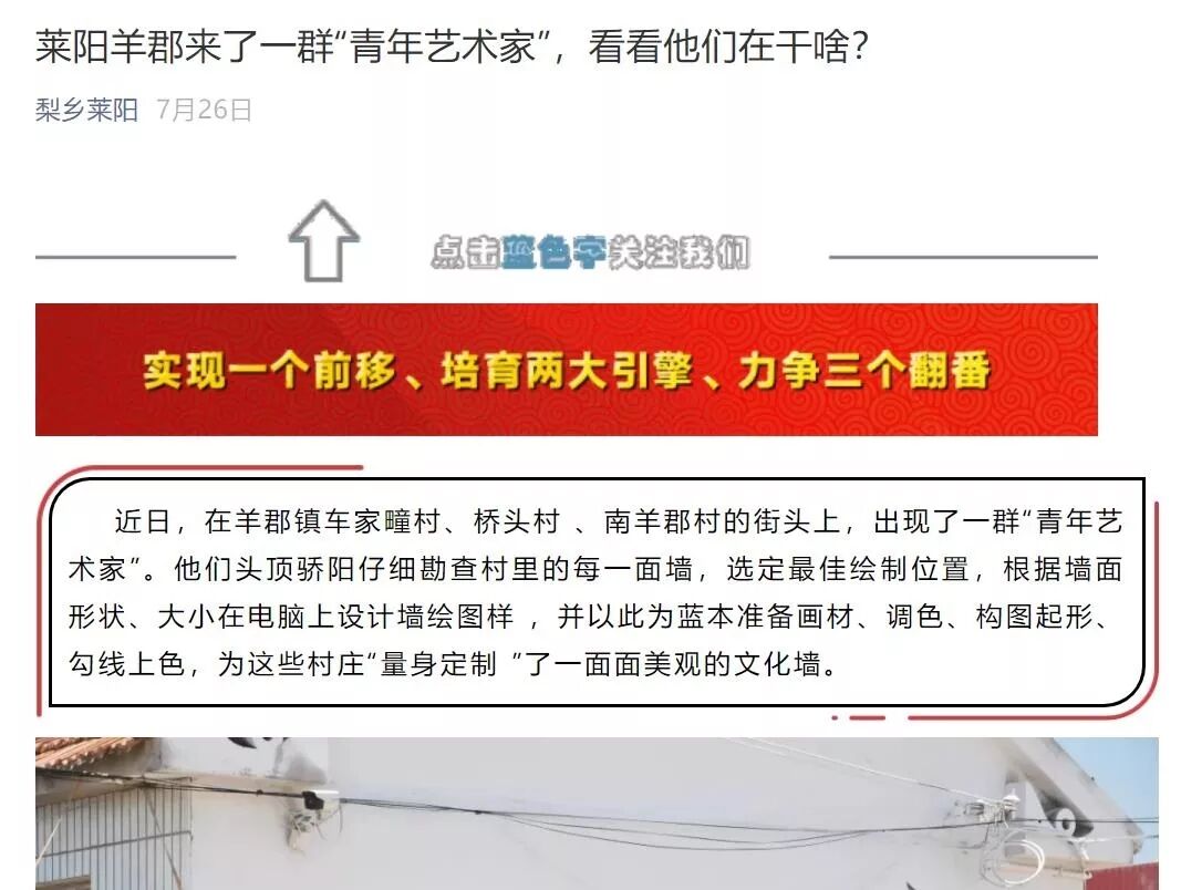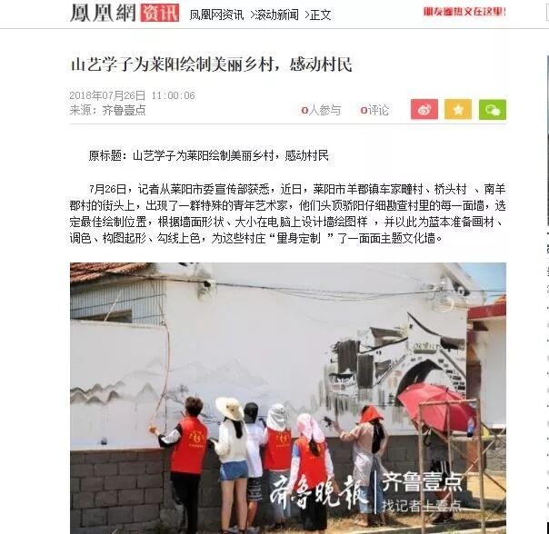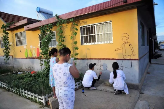 山东艺术学院创新创业理事会会长单位山东绘品塑文化传播有限公司董事长冯统得知本次社会实践的消息后积极响应并参与其中,与实践团同吃同住同奋战,在制图、构图方面提供了技术支持,使实践团的作业效率有了大幅提高。在校企双方的共同努力下,40多幅主题文化墙陆续绘制完成,为乡村振兴战略奉献青春力量,彰显了山东艺术学院校友企业的社会责任感和担当意识,体现了当代青年投身社会公益、奉献聪明才智,有理想、敢作为的时代风范。