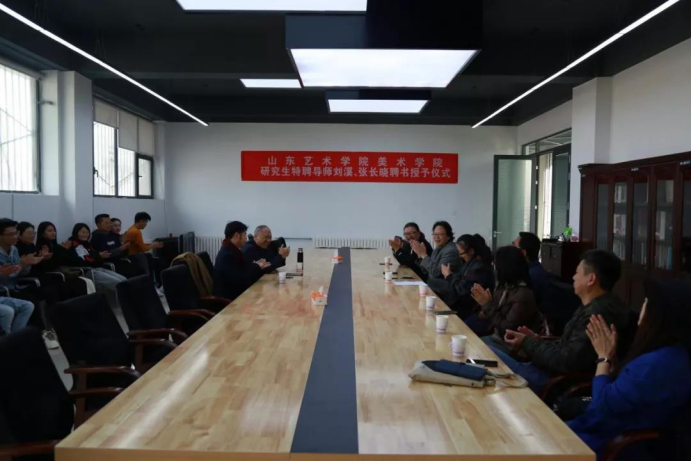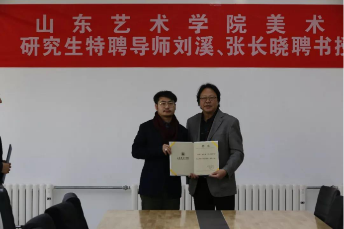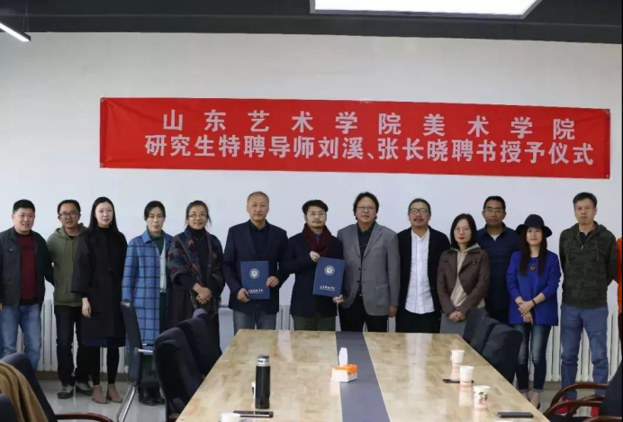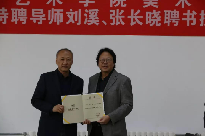 10月30日下午,中国文艺评论家协会会员、济南市文艺评论家协会主席刘溪先生,意大利坦科国家奖艺术评审委员会委员、米兰中国文化周组委会·主席、米兰圣心天主教大学·特聘顾问、罗马外国语大学·客座教授张长晓先生,受聘为美术学院硕士研究生导师仪式在长清校区举行。山东艺术学院院长王力克出席并颁发聘书,美术学院副院长孙磊、沈颖及师生代表参加了本次授聘仪式。仪式由沈颖主持。