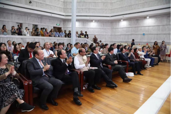 印度驻华大使唐勇胜,中国和平发展基金会秘书长徐建国,副秘书长王华,中国美术家协会分党组书记、驻会副主席徐里,山东艺术学院美术学院教授毛岱宗、岳海波、袁僩、吴晓林、杨斌、孙俊之、丁奕翔、邸超、岳小飞、邓云、甘超存、于磊、刘庆国等出席开幕式。