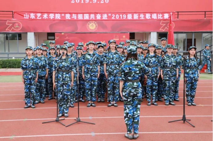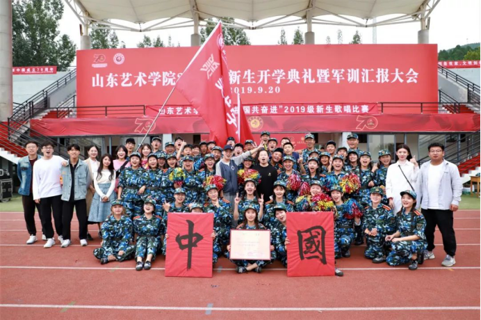 9月20日,山东艺术学院2019级新生开学典礼暨军训汇报大会在长清校区运动场隆重举行。