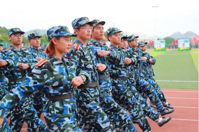美术学院2019级新生迎面走来,他们迈着矫健的步伐,他们喊着嘹亮的口号,他们代表着美院人的自信,他们展示着美院学子的蓬勃朝气。经过连续多天的军训,美院新生以全新的姿态接受领导和老师们的检阅。教官以及新生们的精彩表演展示了军训的丰硕成果。