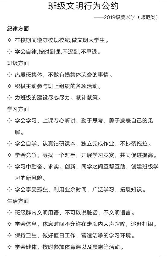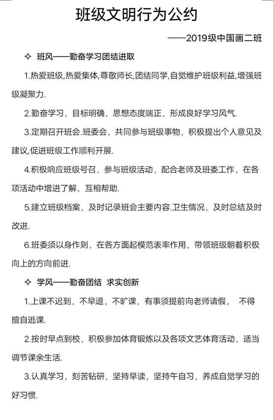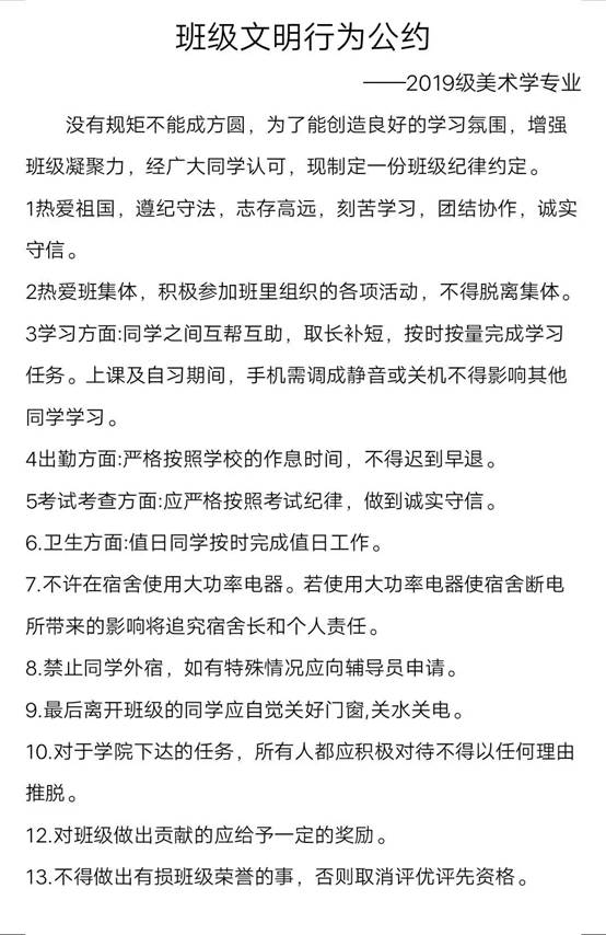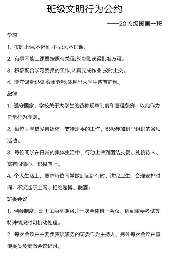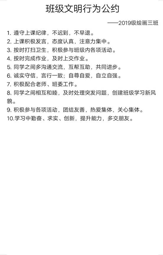 随后,同学们针对班级文明行为公约展开了热烈的讨论与交流,并结合班级实际情况制定了详细的文明行为公约,包括课堂管理、学习习惯、行为规范、公共纪律等方面。会上同学们还进行了线上主题签名活动,积极营造“文明伴我行 校园文明我争优”的浓厚氛围。活动后同学们纷纷表示要为构建文明校园积极行动,以认真践行班级文明行为公约条款为起点,大家互相监督,共同构建和谐文明校园。