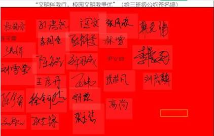 二、“文明伴我行 校园文明我争优”班级文明行为公约主题签名活动