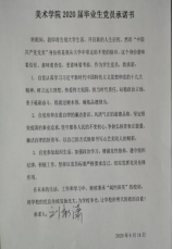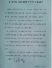 最后,全体毕业生党员作出郑重承诺,并签署《美术学院2020届毕业生党员承诺书》。