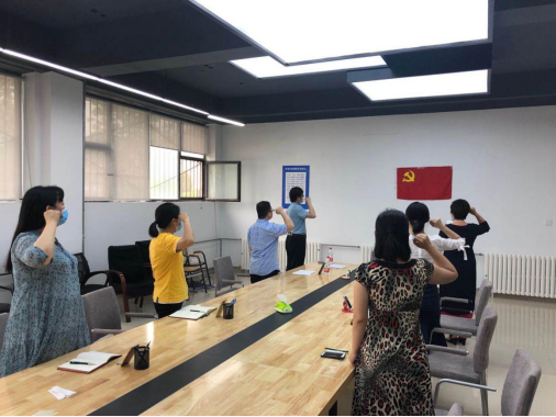 随后,由陈秀芹书记带领全体党员重温入党誓词,面对党旗进行宣誓。
