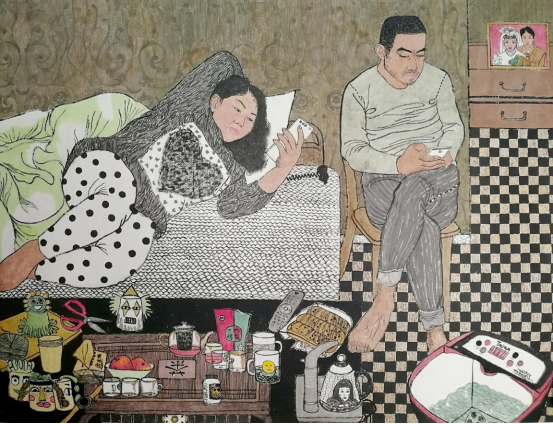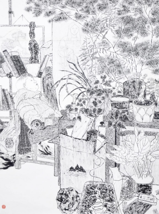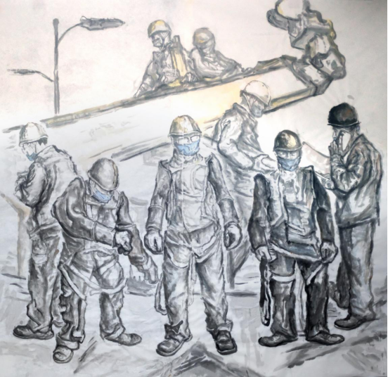 张帆-《抗疫午后》-132.5cmX203.3cm-纸本水墨-2020年-指导教师-刘琦