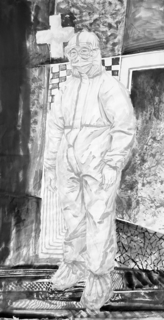 彭帅-《白衣战士》-96×178cm-纸本水墨-2020年指导教师-韩菊声