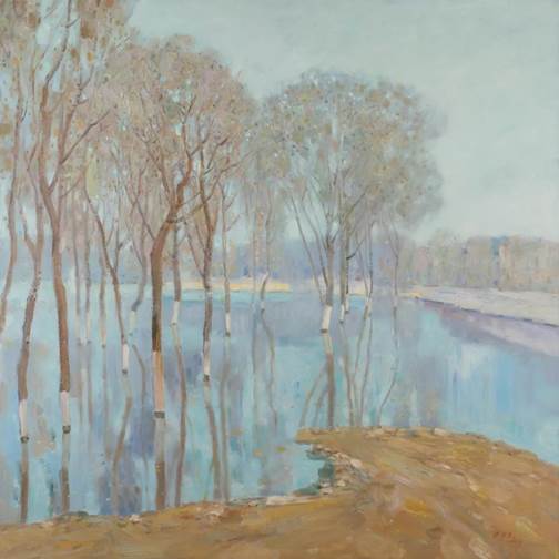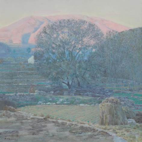 诗意景观,是王力克绘画的一种特殊的叙事方式,诗意强调的是中国性和个人情感的内蕴,景观重在强调视觉的情景与视觉的呈现。王力克的油画一直是以具有中国特性的写实表现绘画而著称,中国特性中最具东方意蕴和特点的实际上是诗意的表达,中国画的核心意境也与此有关。因此,中国油画有别于西方油画的结构与形态,恰恰源自于这种中国化诗意呈现的内在力量,这是自身文脉的显现,也是自身文化在今天时代的发展中不断视觉化的例证。
