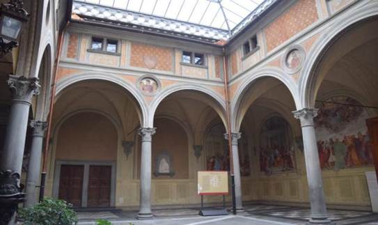 此次讲座主要讲解圣菲利浦奇迹壁画,刘海平老师带领我们从佛罗伦萨的至圣圣母领报教堂的誓言庭院着手,了解意大利文艺复兴时期的壁画圈。