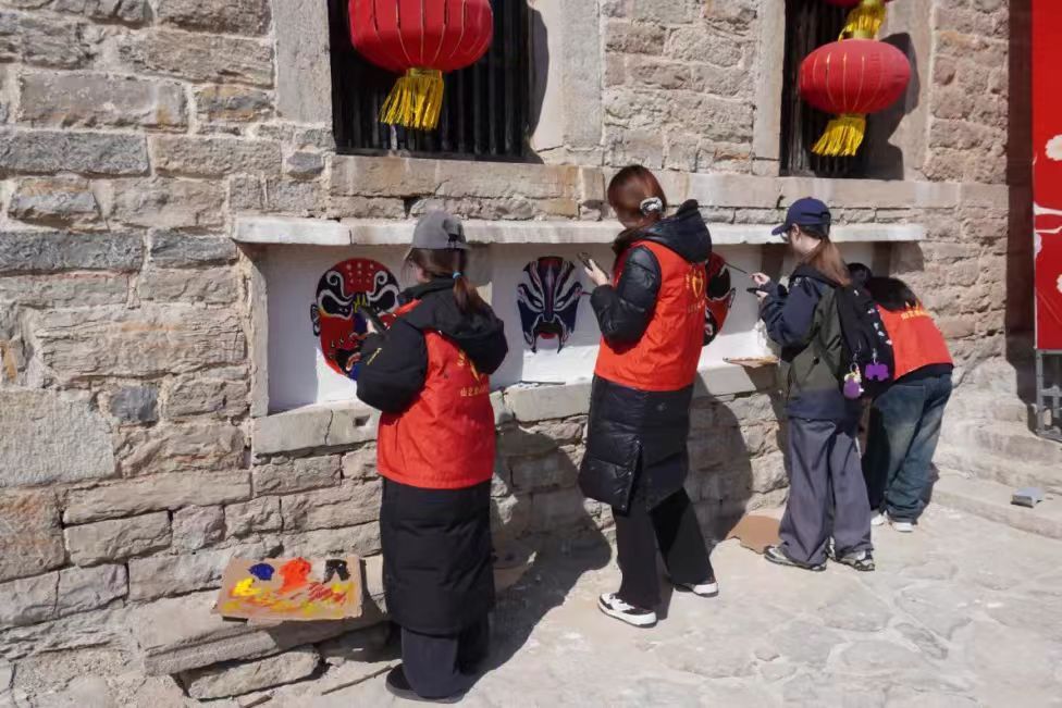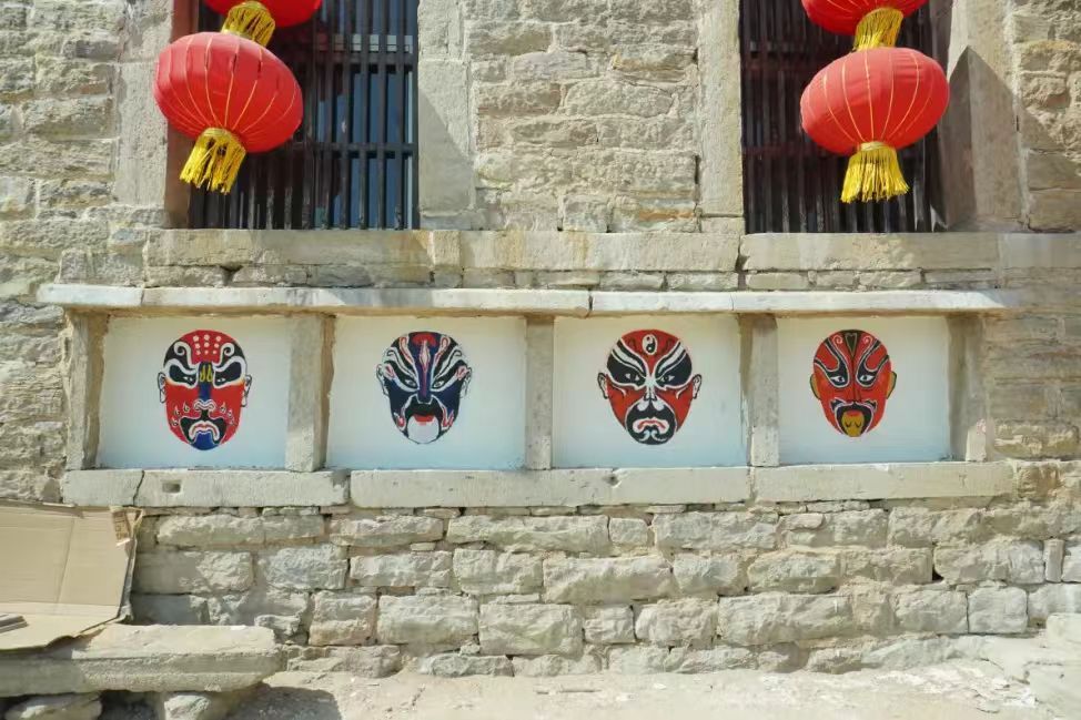 方峪古村位于齐鲁文化交融处,承载着孝德文化、河北梆子戏曲文化等非物质文化。为彰显村庄特色,结合相关文献,团队在村口巷道创作了8组传统脸谱墙绘。