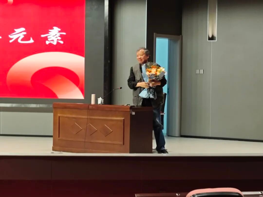 讲座现场,新生代表满怀敬意地为梁文博教授献花,这一举动既是对教授艺术造诣与育人情怀的诚挚致敬,更象征着艺术新生力量对传承薪火的向往与追随。