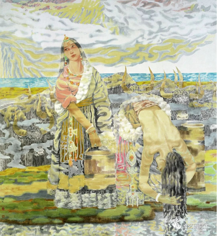 艺术最终将人的现实关怀和终极关怀统一起来。人物画家必须意识到只有真诚地面对我们生存空间的现实,充分认识它,才能超越它。所以对自身生存状态的诚实是必要的,这种一贯性的表现决定了作品的感染力与对话的程度。艺术家的义务是将那些体现生命感悟色彩精神性美好的东西从自然中解放出来,从生活的沙砾中淘出金子。即使在自然中找到的是枯草与瓦片、流水与石坡、动态与表情、一束光与一片影,我也曾试图把放到自然景物里的感觉同样放进人物中去,人物在自然景物的映照下,他已不再显得孤独与单薄,他的容颜盒气息与画面中的草木云山结构为一个整体,而活在了这片灿烂的如诗如幻的光与影、笔与墨的交响所编织的梦境里。